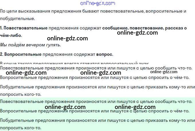 Готовые домашние задания по Русскому языку за 3 класс Учебник Иванов, Евдокимова Начальная школа XXI века 2022 - Урок 21. Виды предложений по цели высказывания и интонации 1