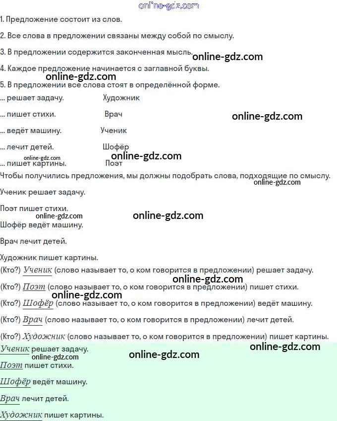 Урок 20. Предложение и его смысл. Слова в предложении