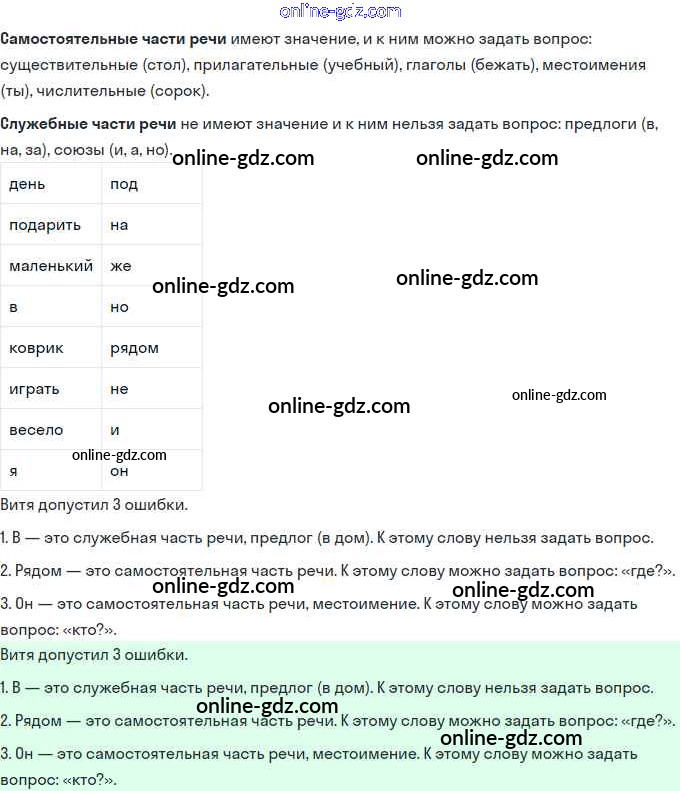 Готовые домашние задания по Русскому языку за 3 класс Учебник Иванов, Евдокимова Начальная школа XXI века 2022 - Урок 62. Самостоятельные и служебные части речи 1