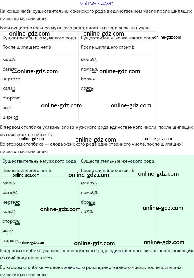 Готовые домашние задания по Русскому языку за 3 класс Учебник Иванов, Евдокимова Начальная школа XXI века 2022 - Урок 71. Правописание мягкого знака после шипящих на конце имён существительных 1