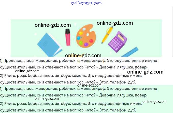 Готовые домашние задания по Русскому языку за 3 класс Учебник Иванов, Евдокимова Начальная школа XXI века 2022 - Урок 94. Имена существительные одушевлённые и неодушевлённые 1