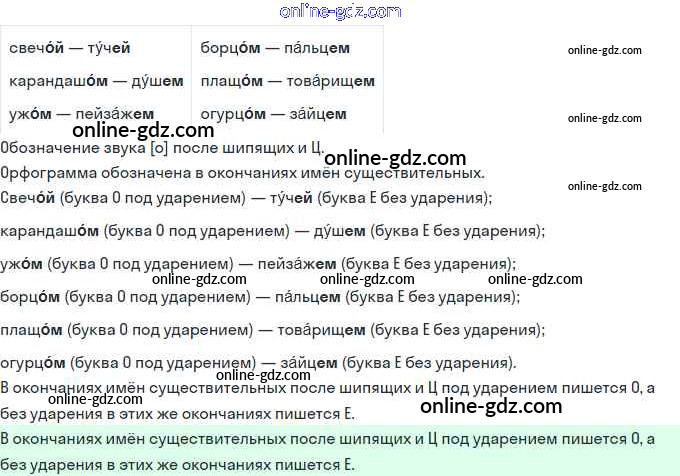 Готовые домашние задания по Русскому языку за 3 класс Учебник Иванов, Евдокимова Начальная школа XXI века 2022 - Урок 100. Гласные о и е в окончаниях имён существительных после шипящих и ц 1