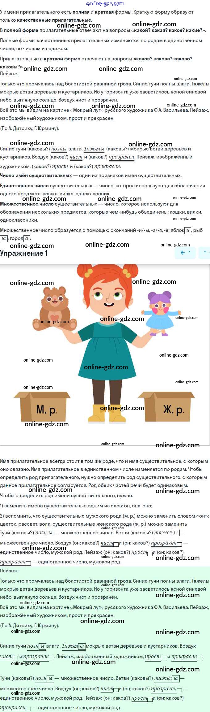Готовые домашние задания по Русскому языку за 3 класс Учебник Иванов, Евдокимова Начальная школа XXI века 2022 - Урок 124. Краткая форма качественных прилагательных 1