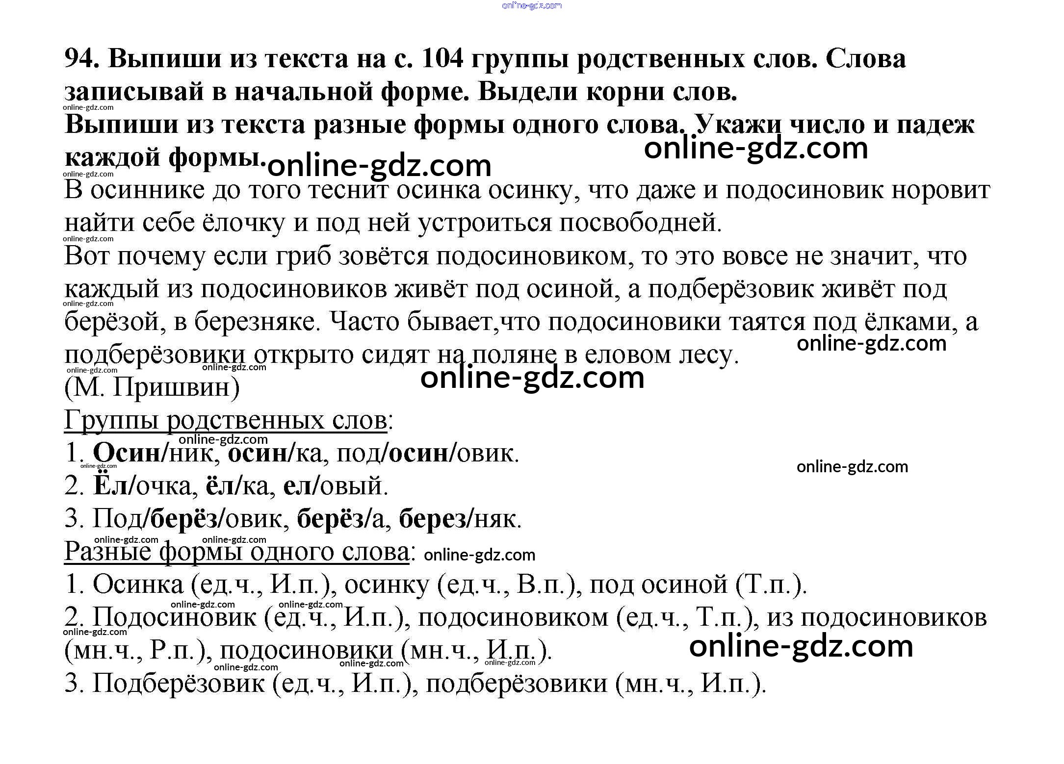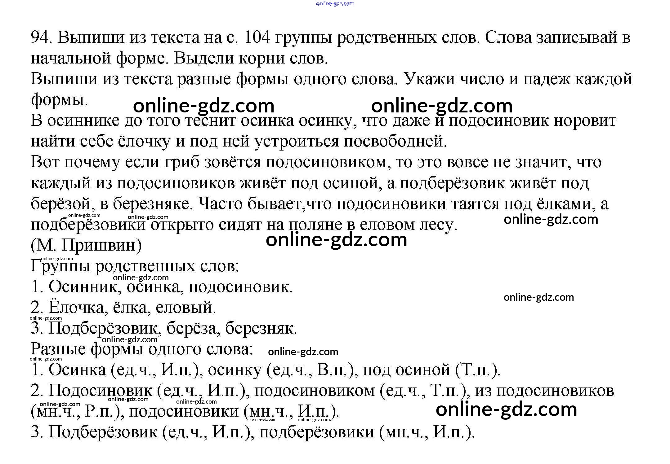 Готовые домашние задания по Русскому языку за 3 класс Учебник Каленчук, Чуракова Перспективная начальная школа 2014 - Упражнения Часть 1 94