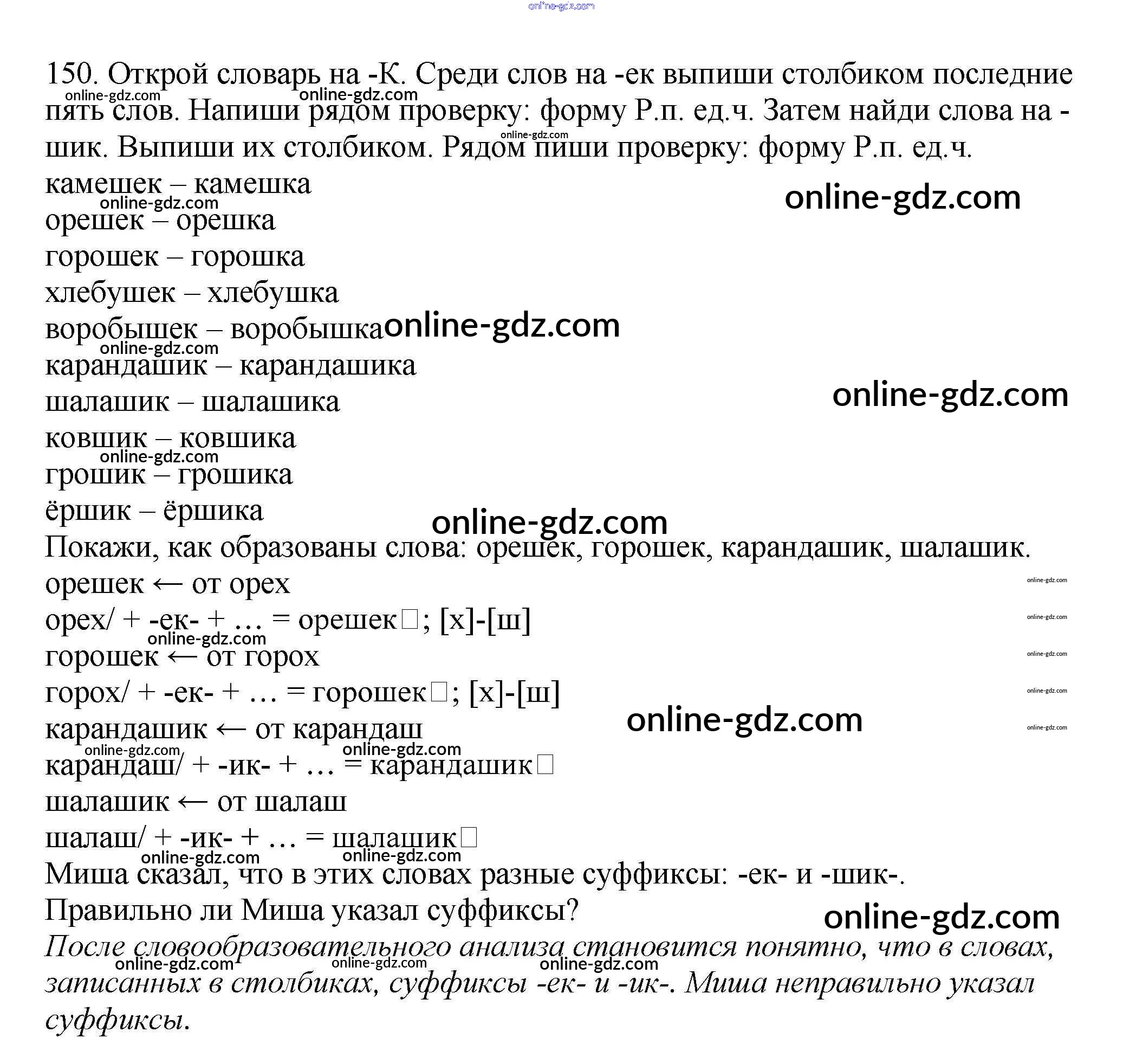 Готовые домашние задания по Русскому языку за 3 класс Учебник Каленчук, Чуракова Перспективная начальная школа 2014 - Упражнения Часть 3 150