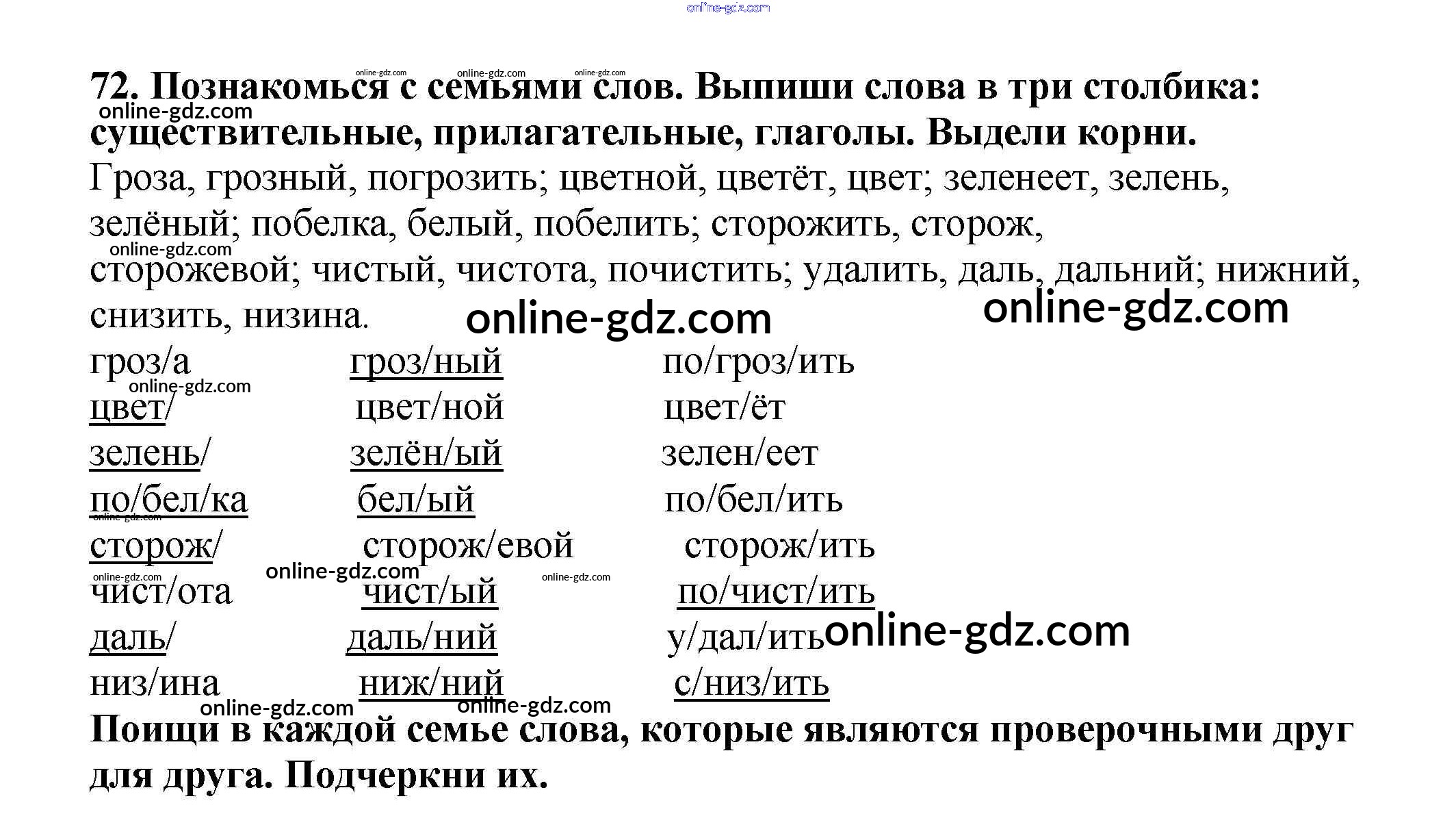 Готовые домашние задания по Русскому языку за 3 класс Учебник Каленчук, Чуракова Перспективная начальная школа 2014 - Упражнения Часть 3 72