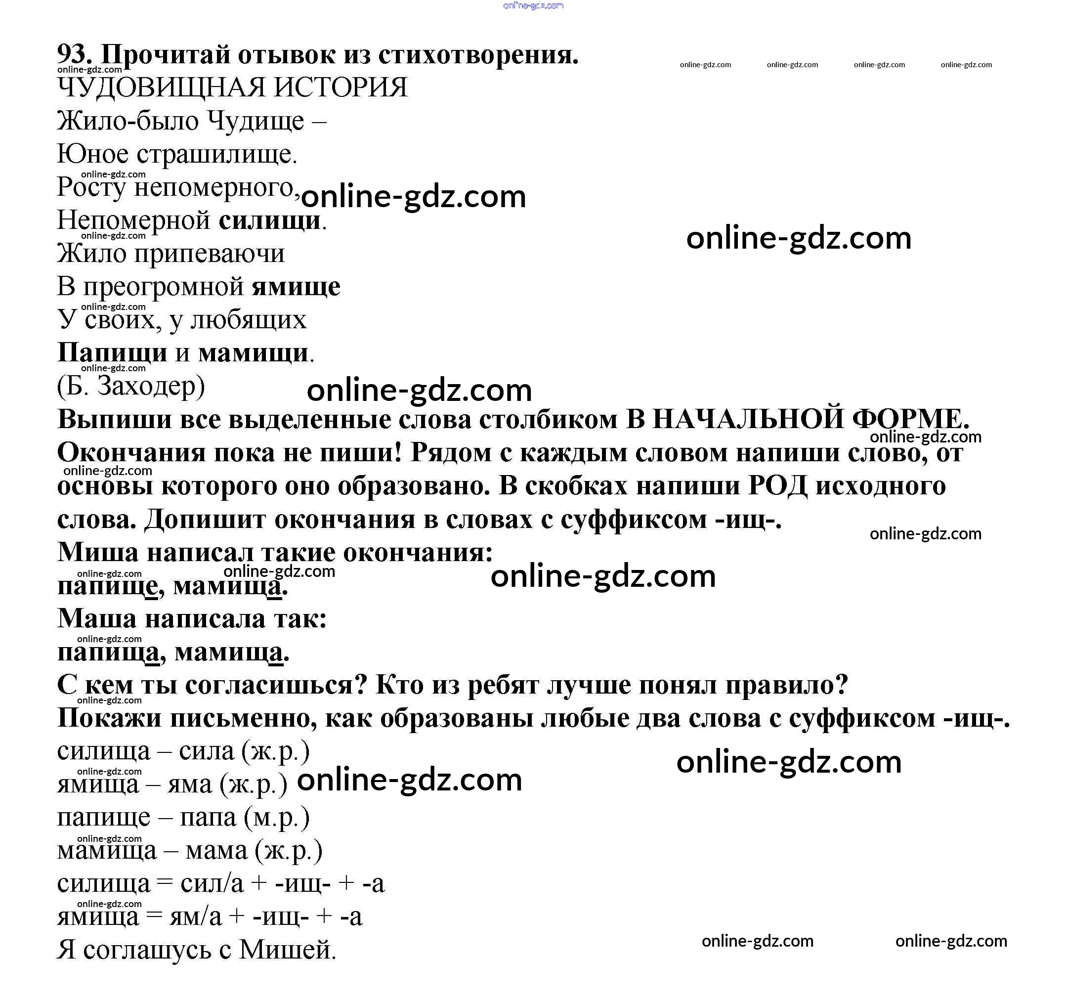 Готовые домашние задания по Русскому языку за 3 класс Учебник Каленчук, Чуракова Перспективная начальная школа 2014 - Упражнения Часть 3 93