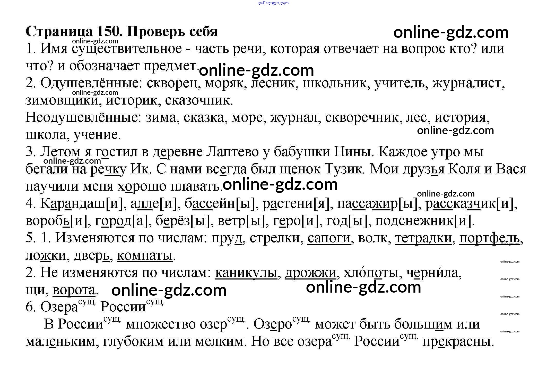 Готовые домашние задания по Русскому языку за 3 класс Учебник Климанова, Бабушкина Перспектива 2014 - Проверь себя (страницы) Часть 1 (упражнения) Страница 150