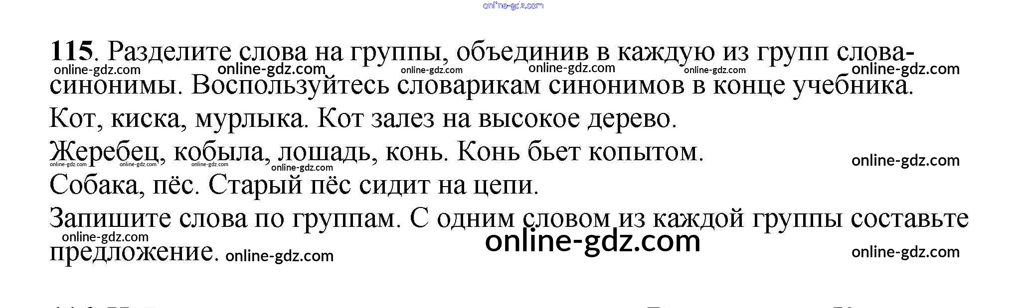 Готовые домашние задания по Русскому языку за 3 класс Учебник Климанова, Бабушкина Перспектива 2014 - Часть 1 (упражнения) 115