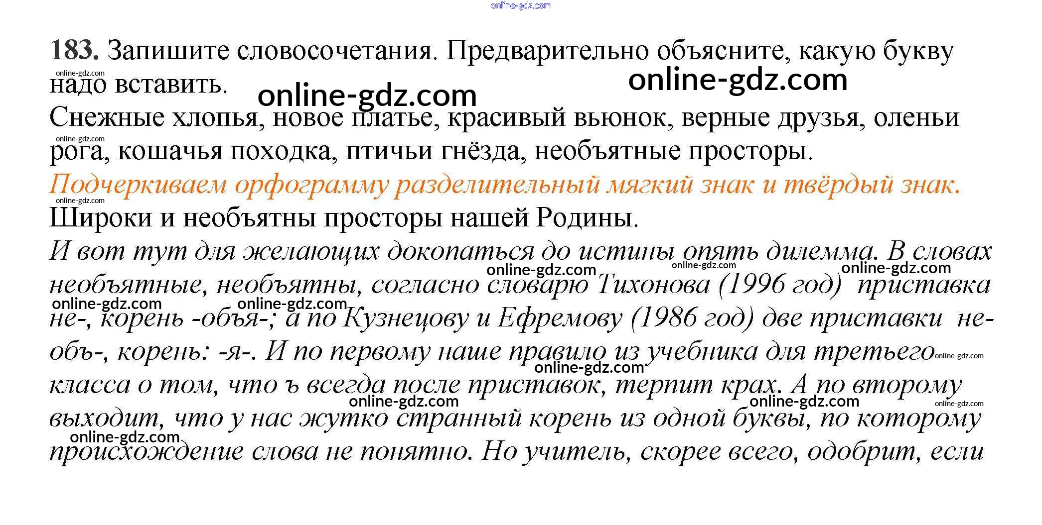 Готовые домашние задания по Русскому языку за 3 класс Учебник Климанова, Бабушкина Перспектива 2014 - Часть 1 (упражнения) 183
