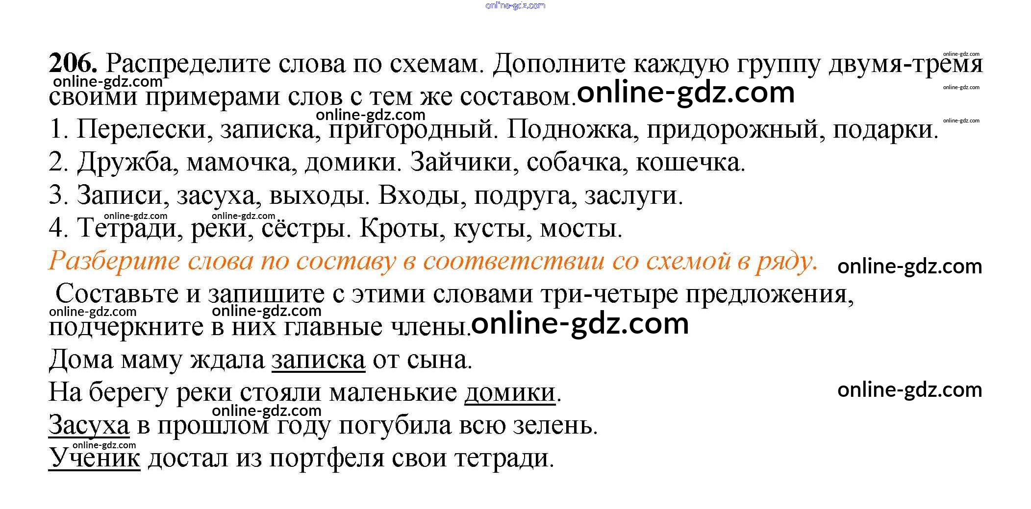 Готовые домашние задания по Русскому языку за 3 класс Учебник Климанова, Бабушкина Перспектива 2014 - Часть 1 (упражнения) 206
