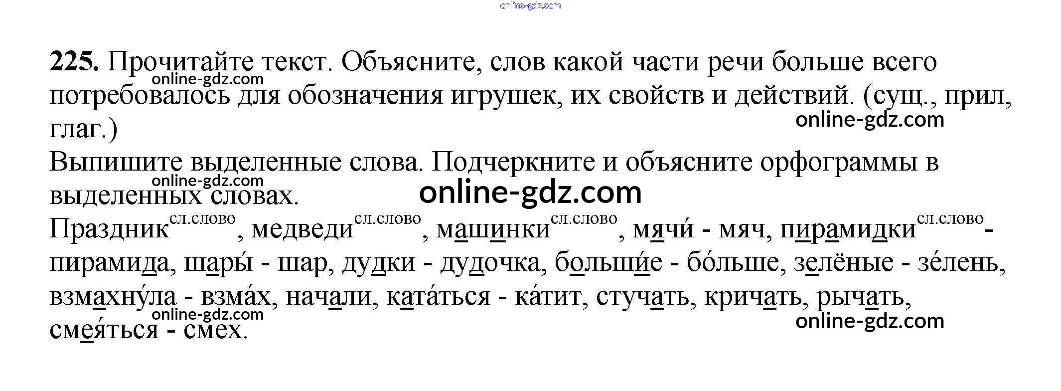 Готовые домашние задания по Русскому языку за 3 класс Учебник Климанова, Бабушкина Перспектива 2014 - Часть 1 (упражнения) 225