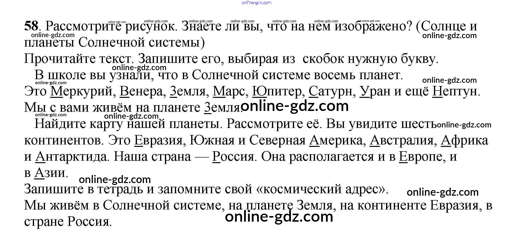 Готовые домашние задания по Русскому языку за 3 класс Учебник Климанова, Бабушкина Перспектива 2014 - Часть 1 (упражнения) 58
