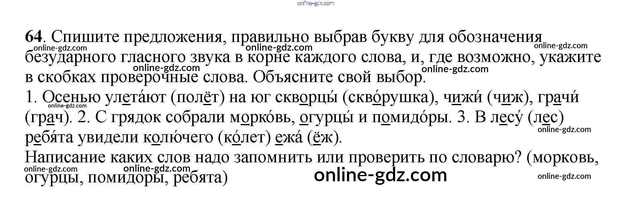 Готовые домашние задания по Русскому языку за 3 класс Учебник Климанова, Бабушкина Перспектива 2014 - Часть 1 (упражнения) 64