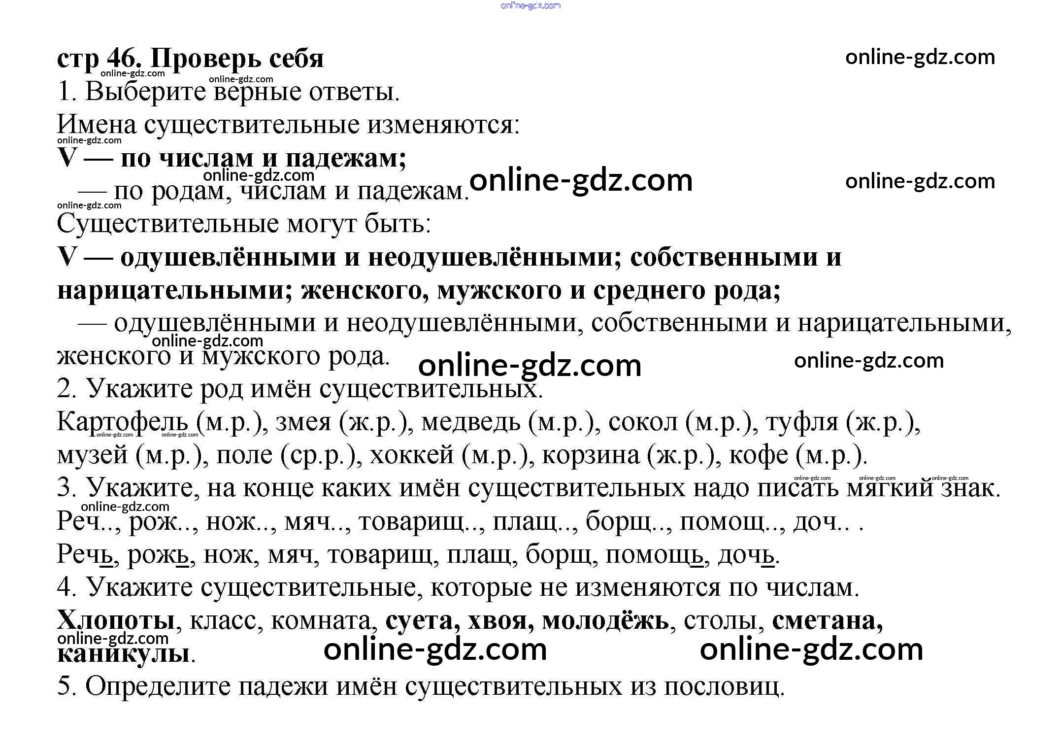 Готовые домашние задания по Русскому языку за 3 класс Учебник Климанова, Бабушкина Перспектива 2014 - Проверь себя (страницы) Часть 2 (упражнения) Страница 46
