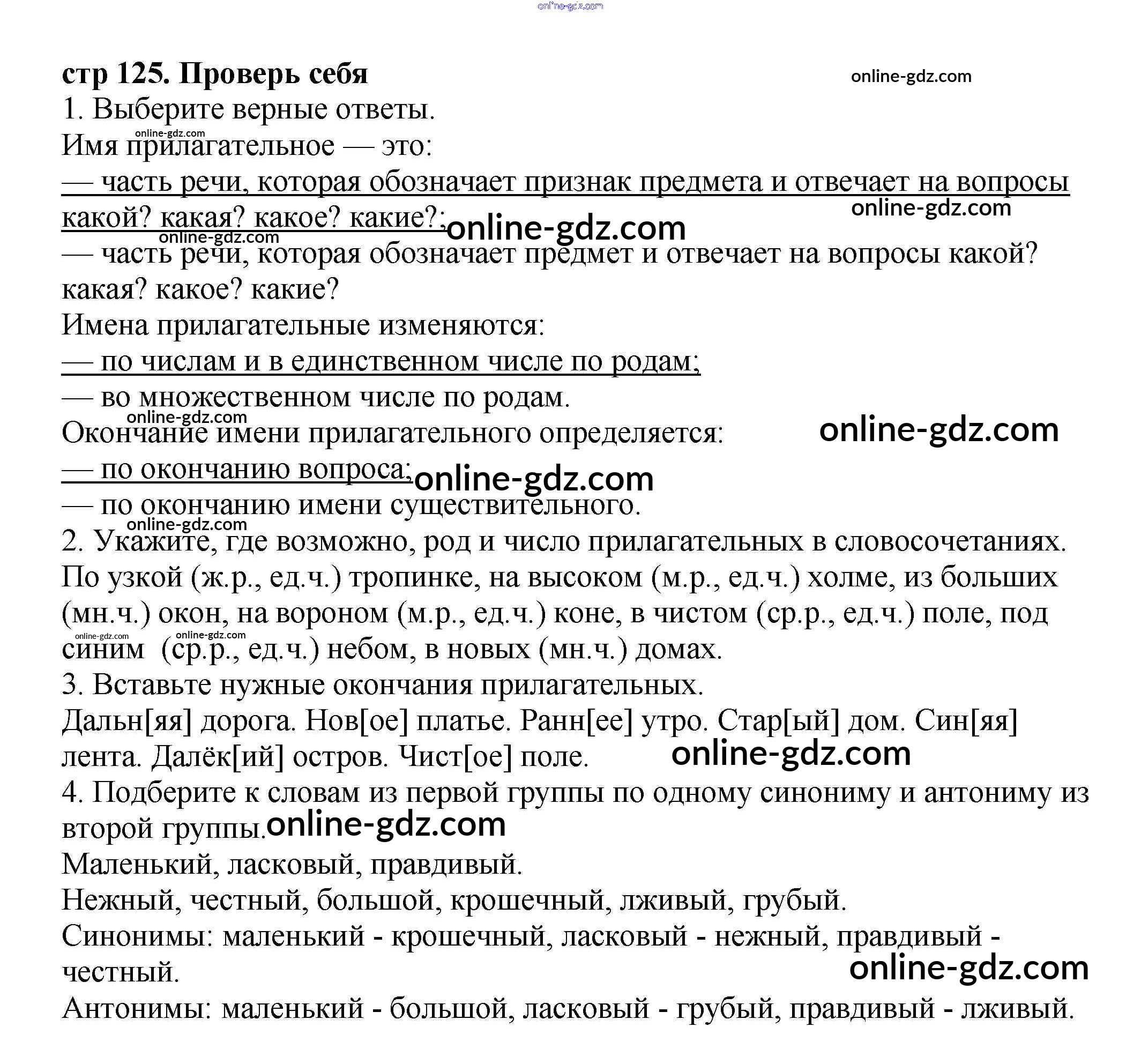 Готовые домашние задания по Русскому языку за 3 класс Учебник Климанова, Бабушкина Перспектива 2014 - Проверь себя (страницы) Часть 2 (упражнения) Страница 125