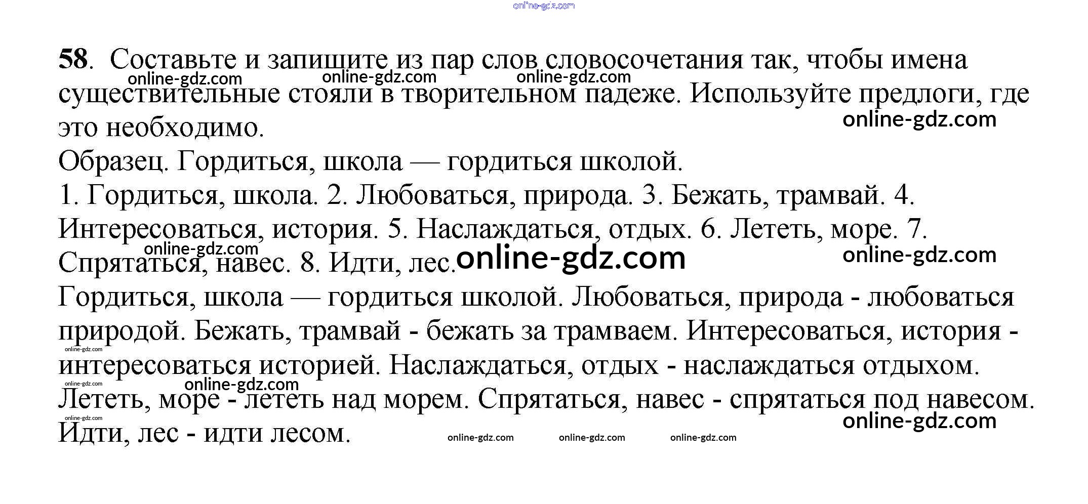 Готовые домашние задания по Русскому языку за 3 класс Учебник Климанова, Бабушкина Перспектива 2014 - Часть 2 (упражнения) 58