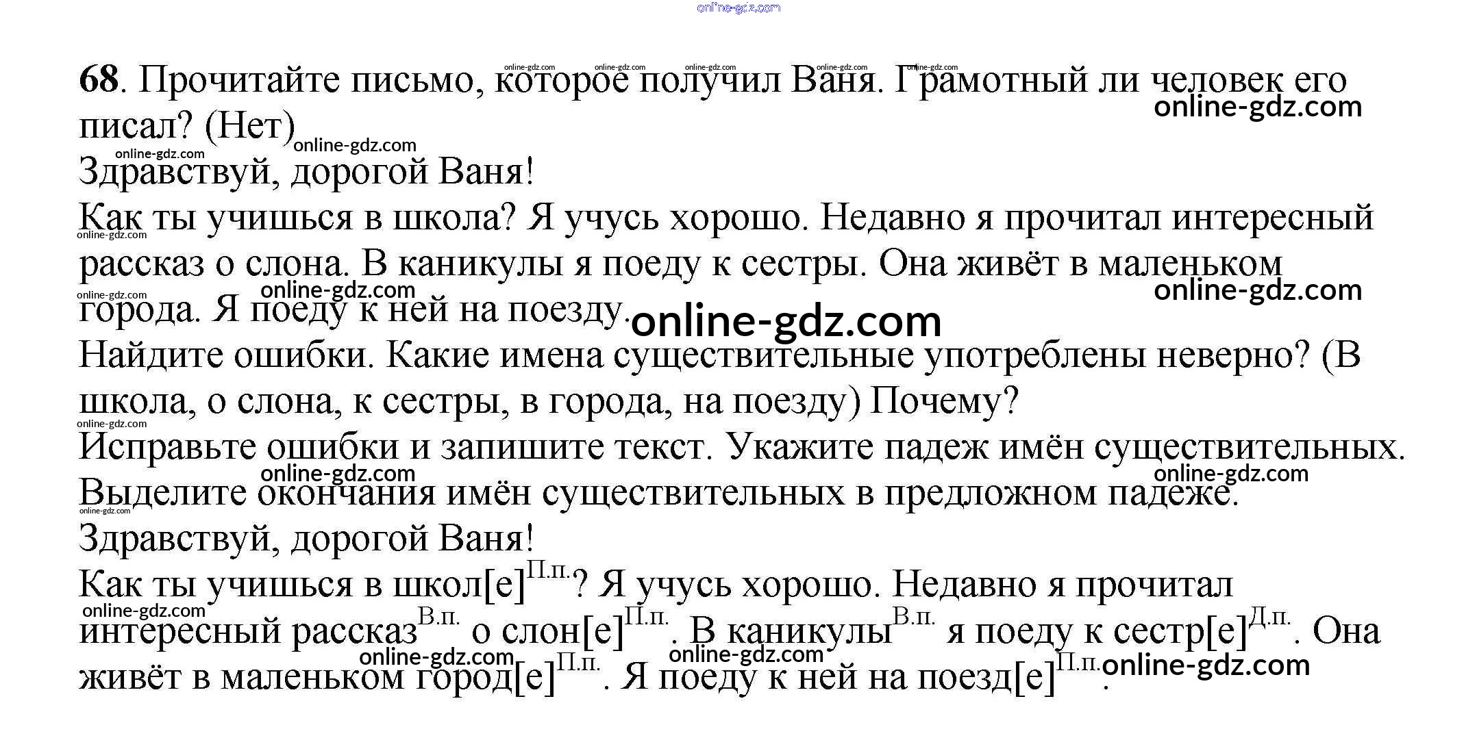 Готовые домашние задания по Русскому языку за 3 класс Учебник Климанова, Бабушкина Перспектива 2014 - Часть 2 (упражнения) 68