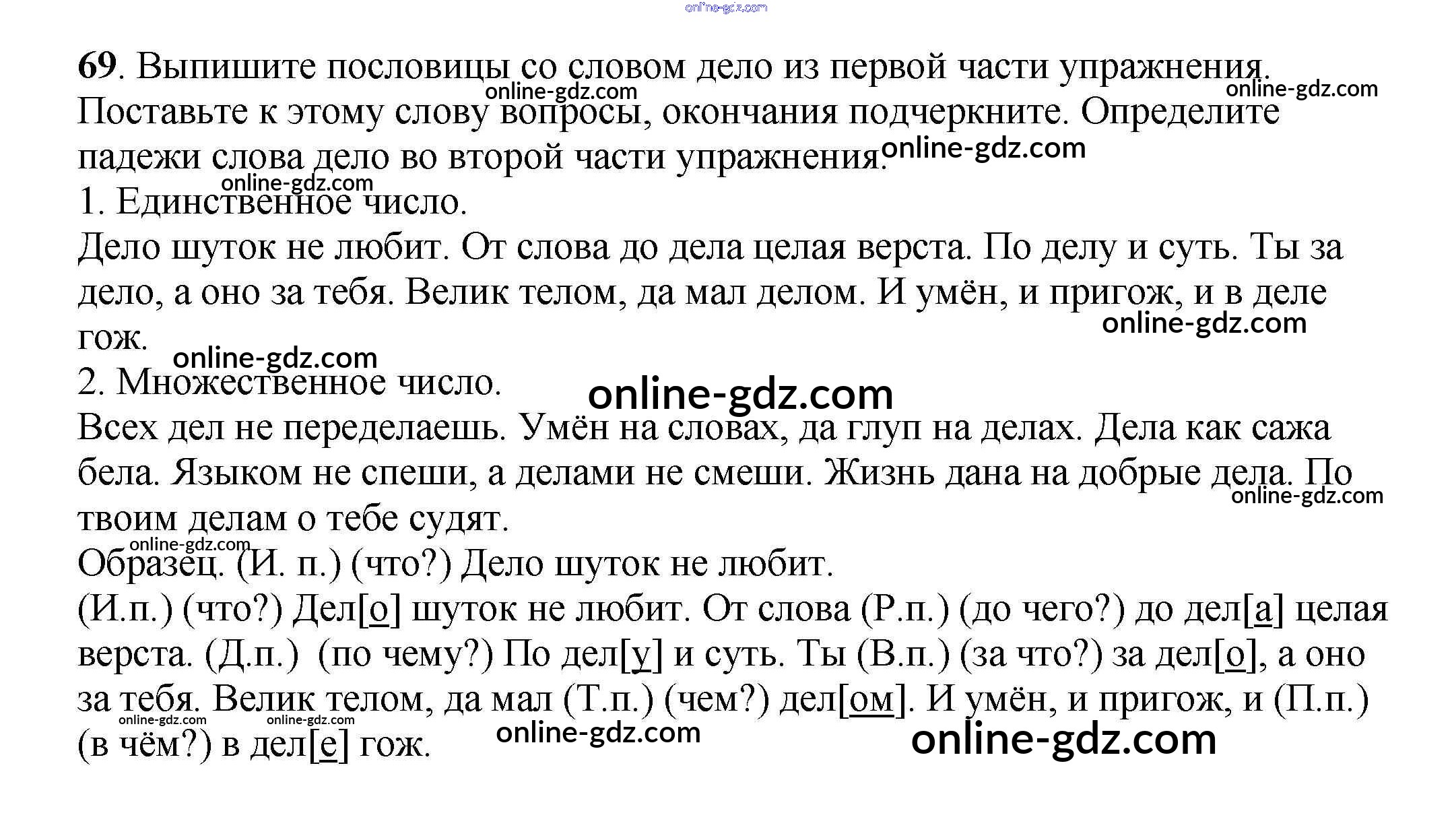 Готовые домашние задания по Русскому языку за 3 класс Учебник Климанова, Бабушкина Перспектива 2014 - Часть 2 (упражнения) 69