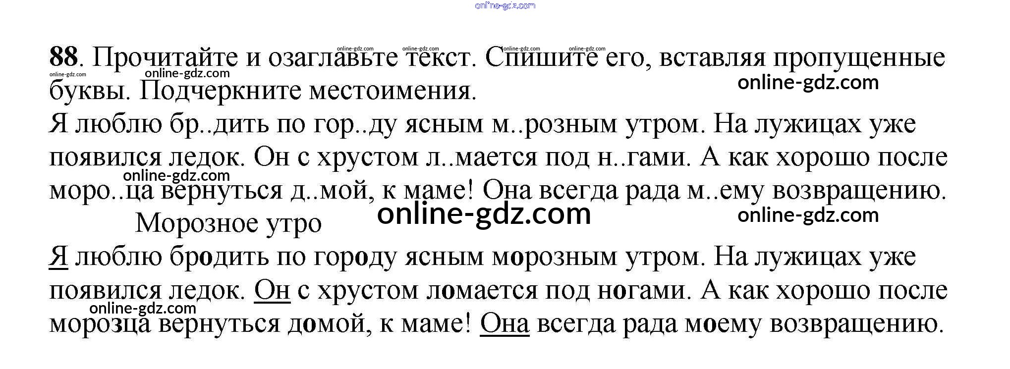 Готовые домашние задания по Русскому языку за 3 класс Учебник Климанова, Бабушкина Перспектива 2014 - Часть 2 (упражнения) 88