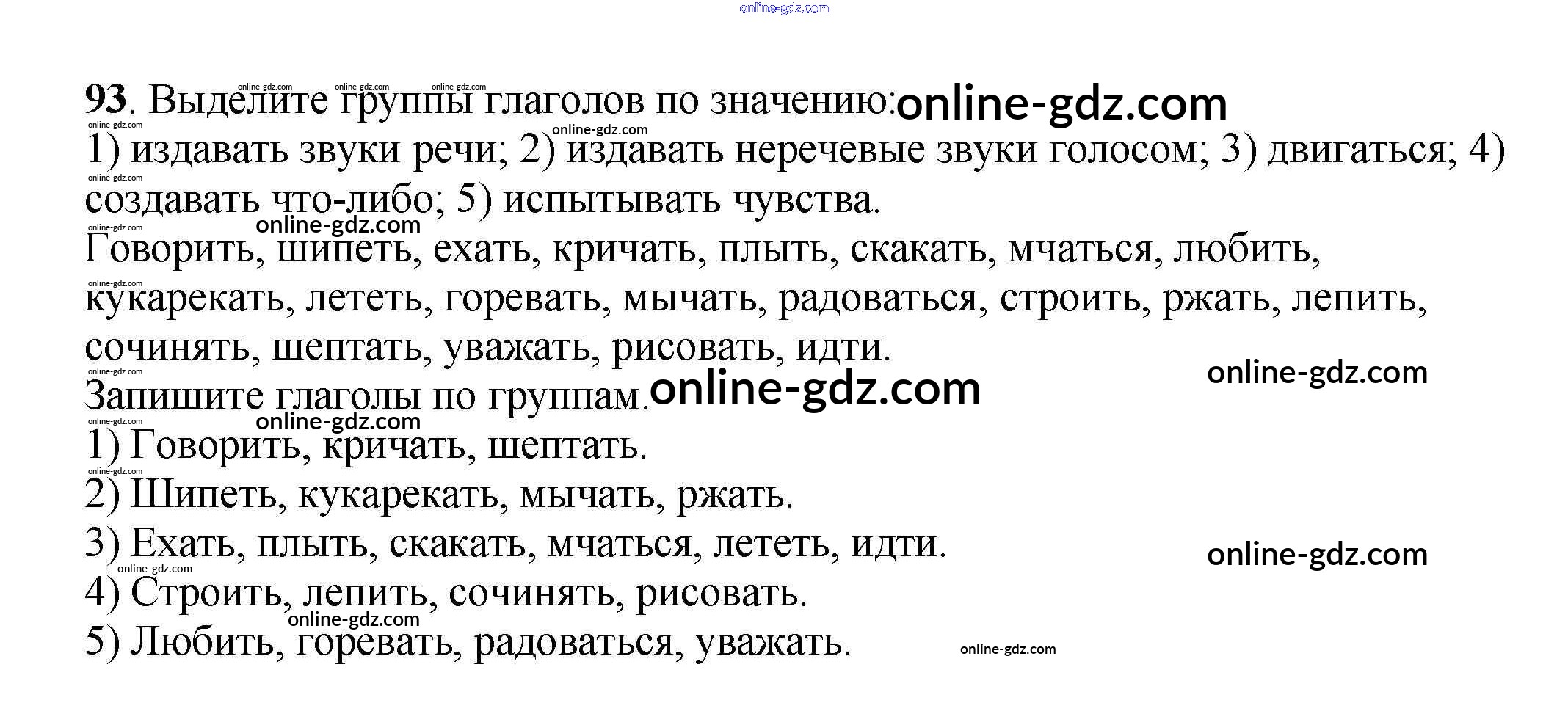 Готовые домашние задания по Русскому языку за 3 класс Учебник Климанова, Бабушкина Перспектива 2014 - Часть 2 (упражнения) 93