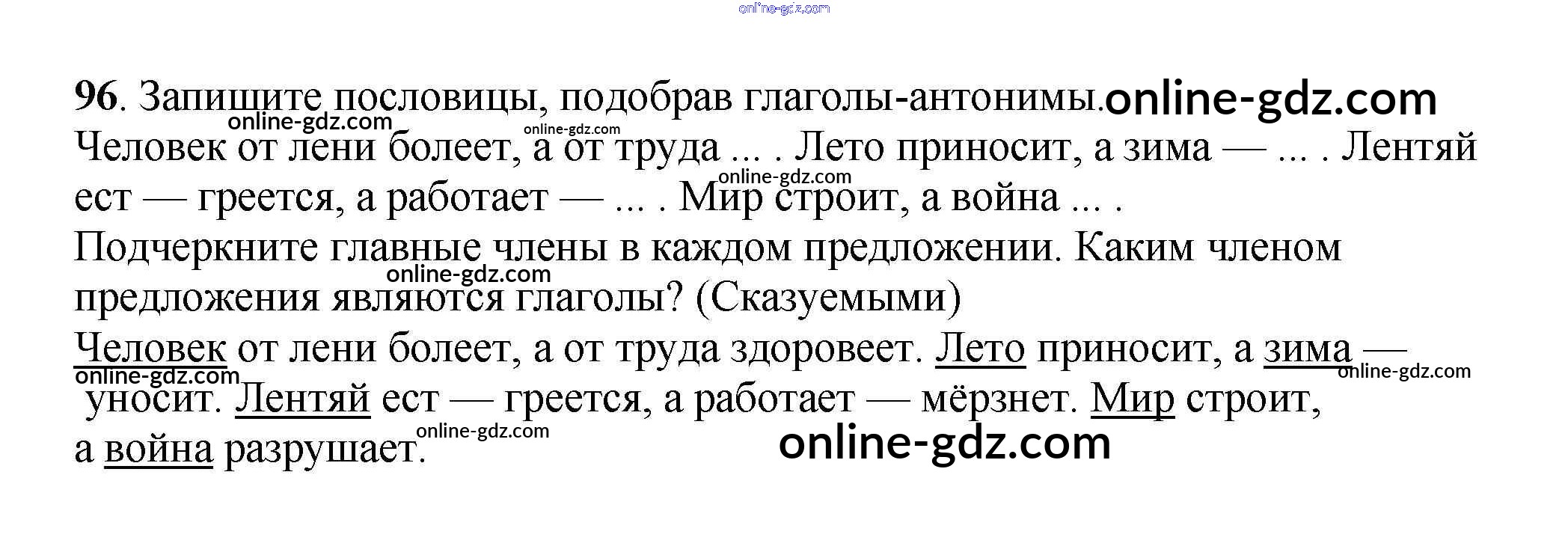 Готовые домашние задания по Русскому языку за 3 класс Учебник Климанова, Бабушкина Перспектива 2014 - Часть 2 (упражнения) 96