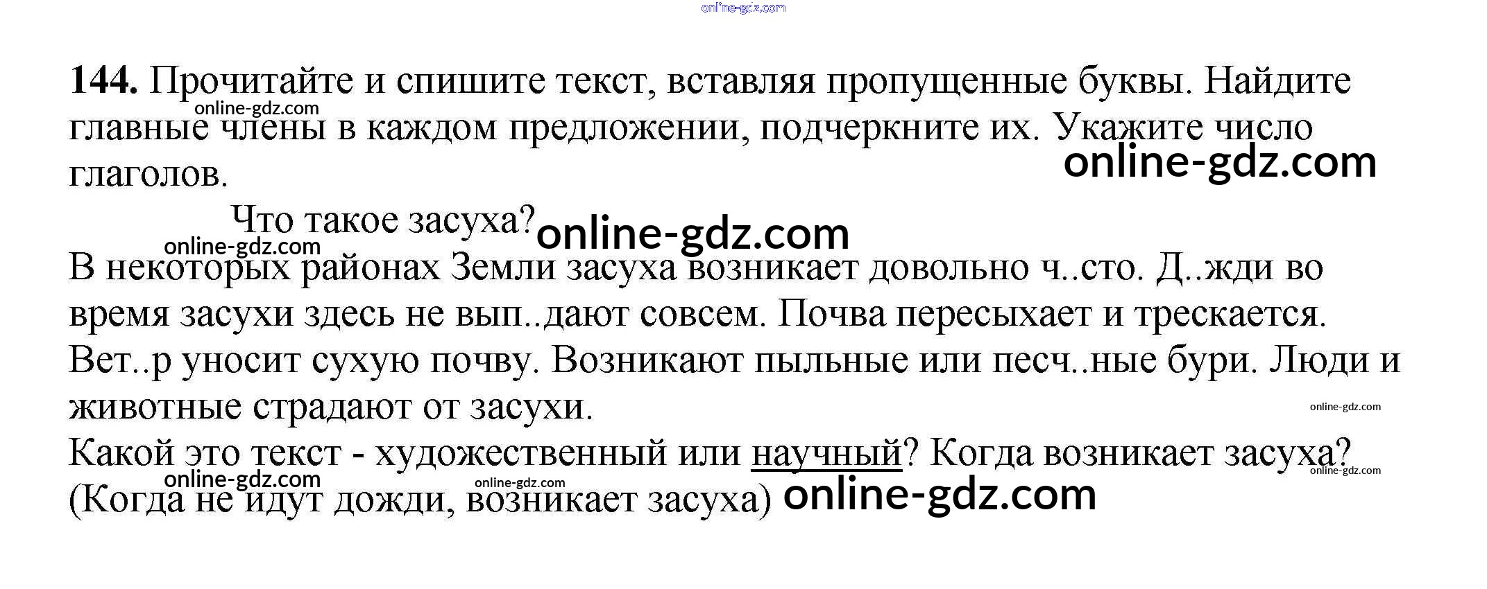 Готовые домашние задания по Русскому языку за 3 класс Учебник Климанова, Бабушкина Перспектива 2014 - Часть 2 (упражнения) 144