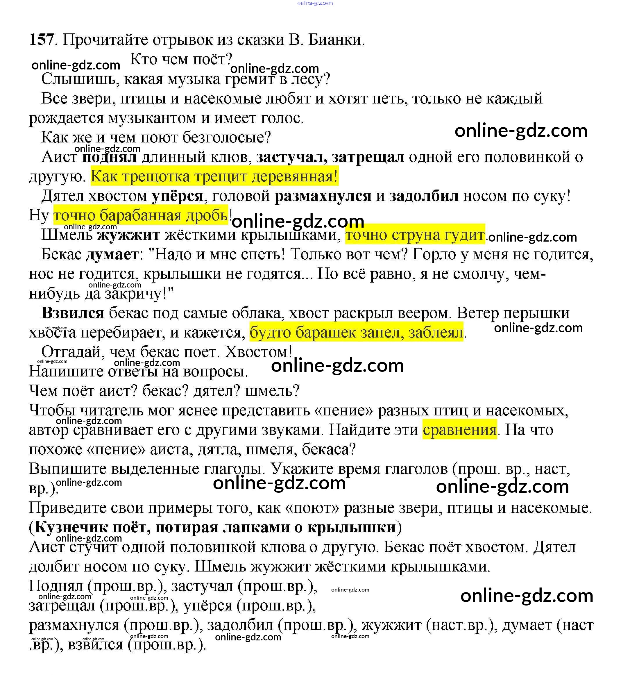 Готовые домашние задания по Русскому языку за 3 класс Учебник Климанова, Бабушкина Перспектива 2014 - Часть 2 (упражнения) 157