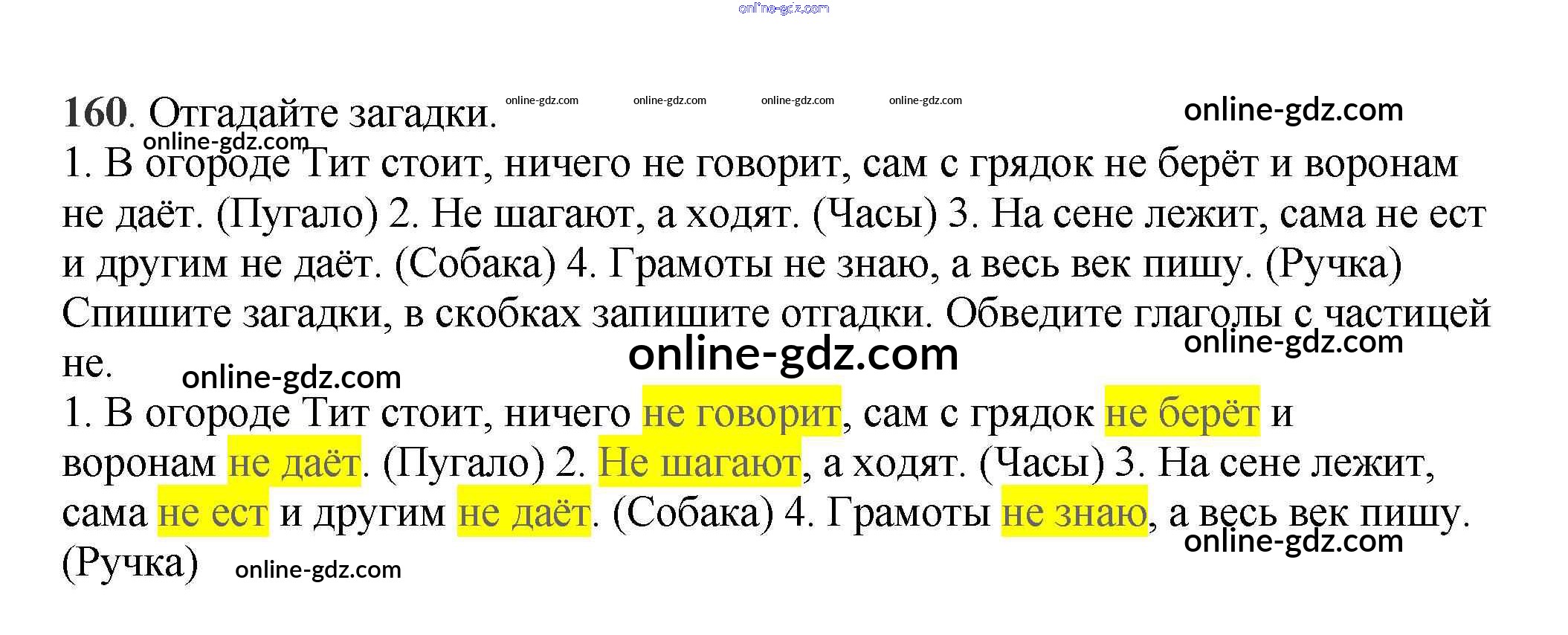 Готовые домашние задания по Русскому языку за 3 класс Учебник Климанова, Бабушкина Перспектива 2014 - Часть 2 (упражнения) 160