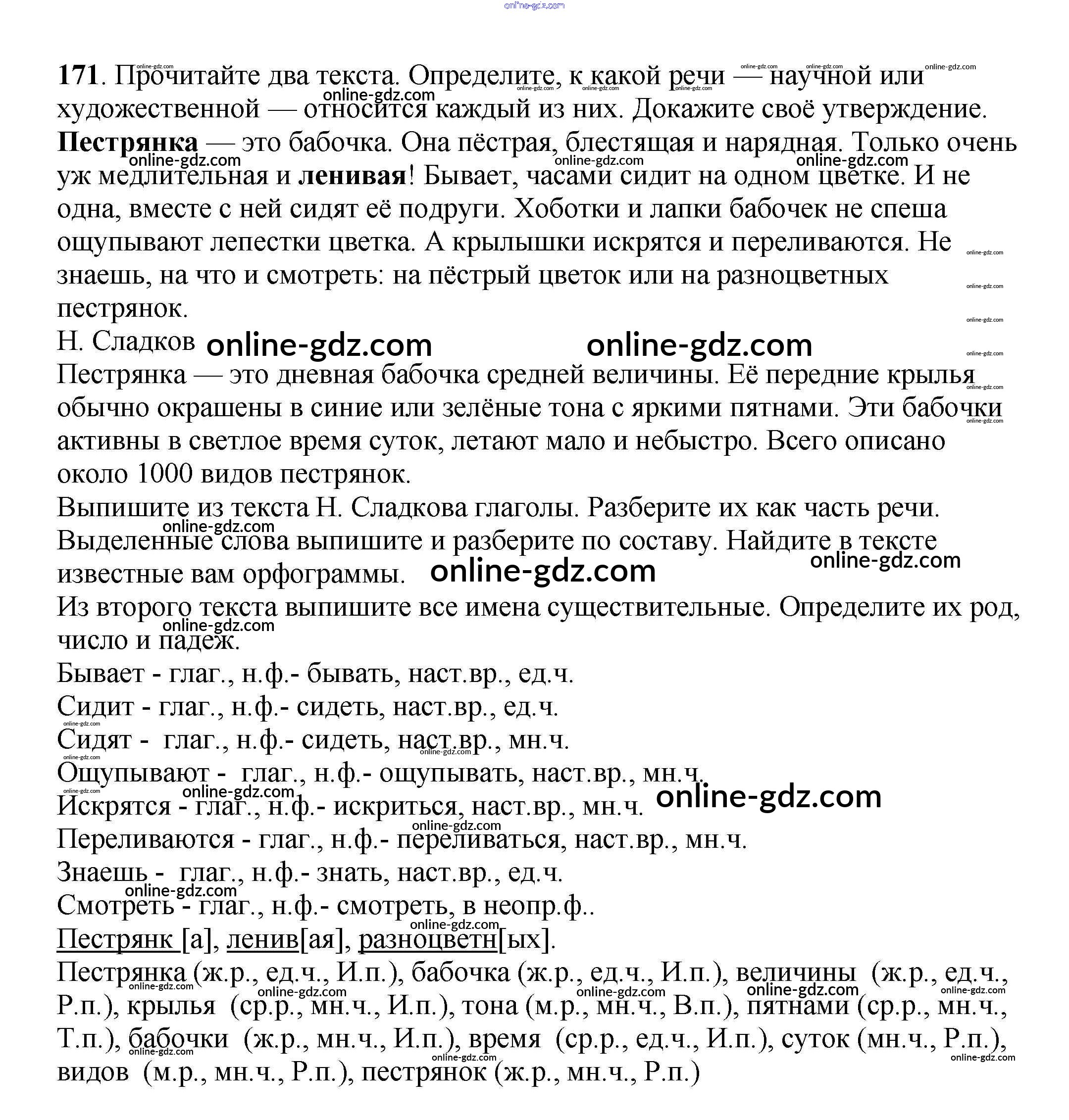 Готовые домашние задания по Русскому языку за 3 класс Учебник Климанова, Бабушкина Перспектива 2014 - Часть 2 (упражнения) 171