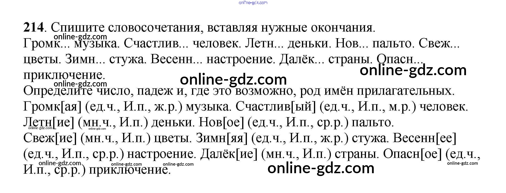 Готовые домашние задания по Русскому языку за 3 класс Учебник Климанова, Бабушкина Перспектива 2014 - Часть 2 (упражнения) 214