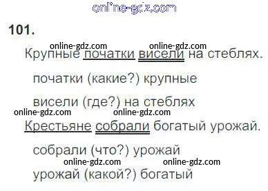 Готовые домашние задания по Русскому языку за 3 класс Учебник Рамзаева Ритм 2016 - Упражнения 101