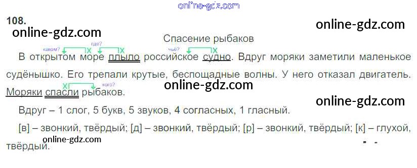 Готовые домашние задания по Русскому языку за 3 класс Учебник Рамзаева Ритм 2016 - Упражнения 108