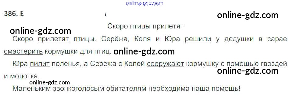 Готовые домашние задания по Русскому языку за 3 класс Учебник Рамзаева Ритм 2016 - Упражнения 386