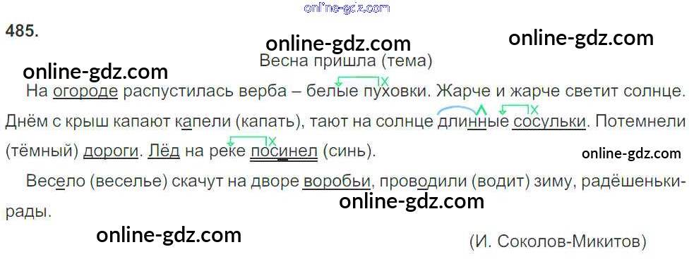 Готовые домашние задания по Русскому языку за 3 класс Учебник Рамзаева Ритм 2016 - Упражнения 485