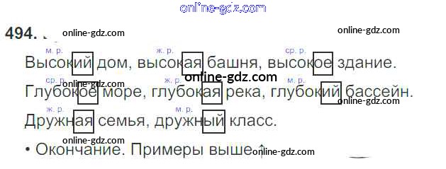Готовые домашние задания по Русскому языку за 3 класс Учебник Рамзаева Ритм 2016 - Упражнения 494