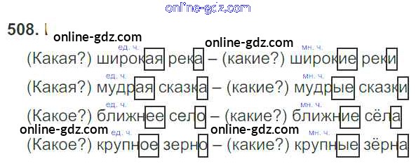 Готовые домашние задания по Русскому языку за 3 класс Учебник Рамзаева Ритм 2016 - Упражнения 508