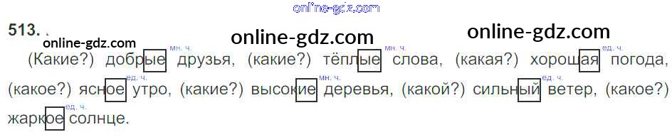 Готовые домашние задания по Русскому языку за 3 класс Учебник Рамзаева Ритм 2016 - Упражнения 513