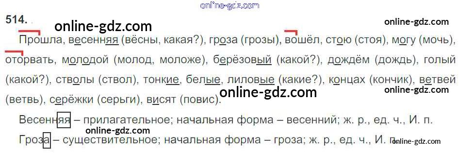 Готовые домашние задания по Русскому языку за 3 класс Учебник Рамзаева Ритм 2016 - Упражнения 514