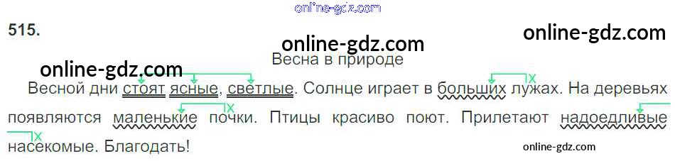 Готовые домашние задания по Русскому языку за 3 класс Учебник Рамзаева Ритм 2016 - Упражнения 515