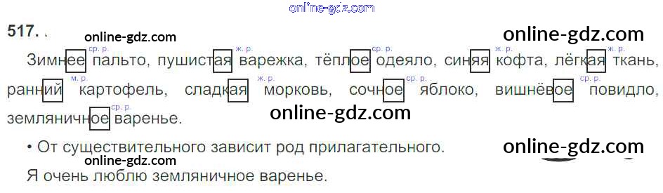 Готовые домашние задания по Русскому языку за 3 класс Учебник Рамзаева Ритм 2016 - Упражнения 517