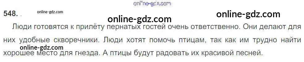 Готовые домашние задания по Русскому языку за 3 класс Учебник Рамзаева Ритм 2016 - Упражнения 548