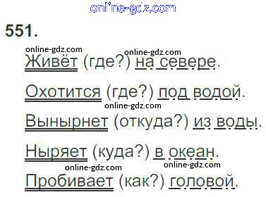 Готовые домашние задания по Русскому языку за 3 класс Учебник Рамзаева Ритм 2016 - Упражнения 551