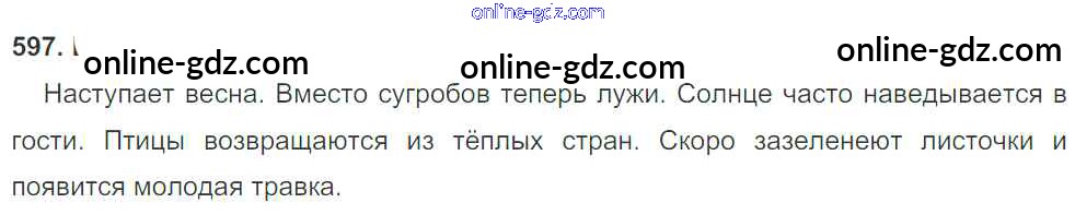 Готовые домашние задания по Русскому языку за 3 класс Учебник Рамзаева Ритм 2016 - Упражнения 597
