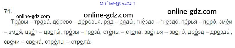 Готовые домашние задания по Русскому языку за 3 класс Учебник Рамзаева Ритм 2016 - Упражнения 71