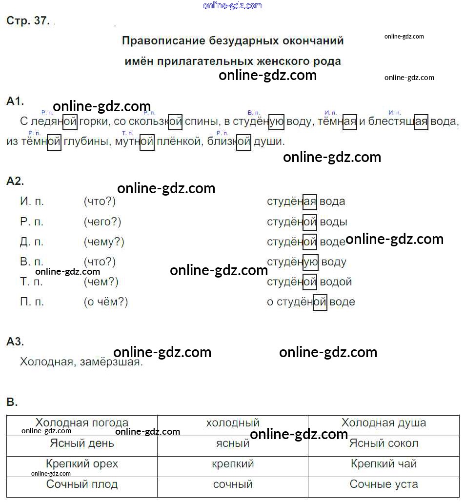 Готовые домашние задания по Русскому языку за 4 класс Тетрадь-тренажер Мишакина, Александрова Начальная школа XXI века 2017 - Страницы 37