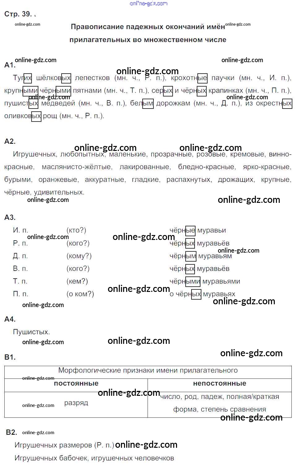 Готовые домашние задания по Русскому языку за 4 класс Тетрадь-тренажер Мишакина, Александрова Начальная школа XXI века 2017 - Страницы 39