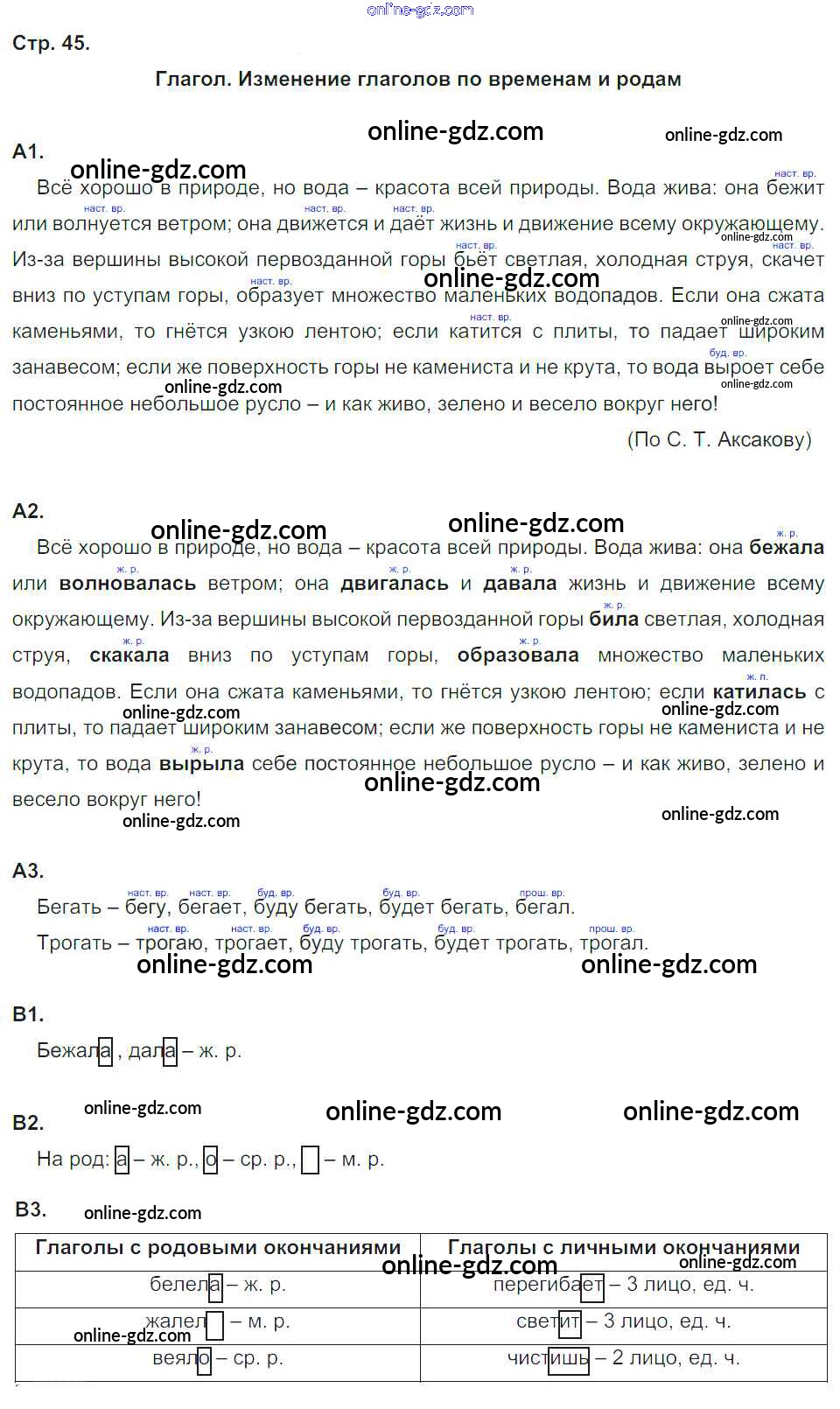 Готовые домашние задания по Русскому языку за 4 класс Тетрадь-тренажер Мишакина, Александрова Начальная школа XXI века 2017 - Страницы 45