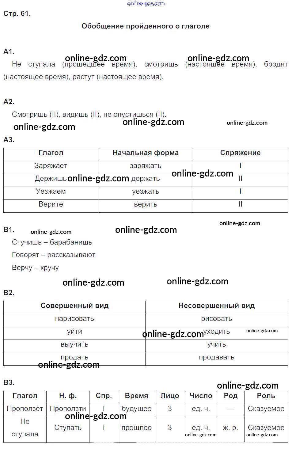 Готовые домашние задания по Русскому языку за 4 класс Тетрадь-тренажер Мишакина, Александрова Начальная школа XXI века 2017 - Страницы 61