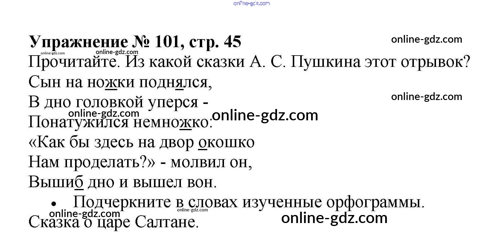 Готовые домашние задания по Русскому языку за 4 класс Рабочая тетрадь Канакина Школа России 2013 - Часть 1. Задания 101